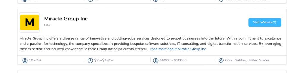 You’ll also find the best web design and development company in Miami, Coral Gables, and the top website development agency in Coral Gables with SEO services—each selected for their ability to deliver websites that are visually compelling and strategically built.