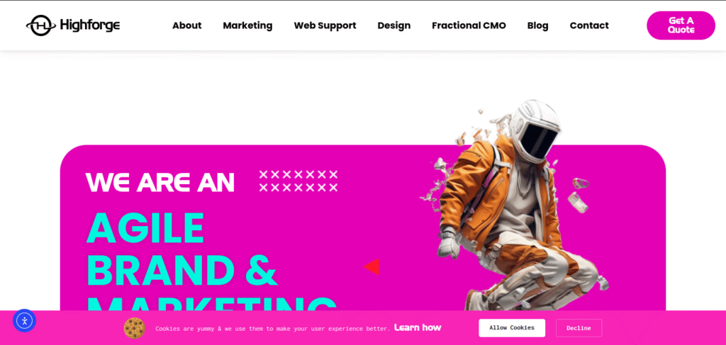 Highforge is a digital collective offering web design, branding, and custom development services to Orlando businesses. With a team of 60+ specialists, they deliver strategy-first websites that combine creative design with robust backend architecture.
