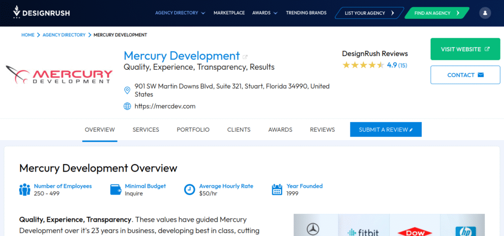 Mercury Development delivers cutting-edge frontend and backend solutions with exceptional attention to detail. Their team specializes in scalable software architecture, UI/UX design, and digital transformation for enterprise clients.