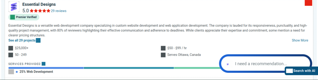 Essential Designs is a versatile web development company headquartered in Winnipeg, specializing in custom website development and web applications. Their team is praised for responsiveness, punctuality, and high-quality project management.